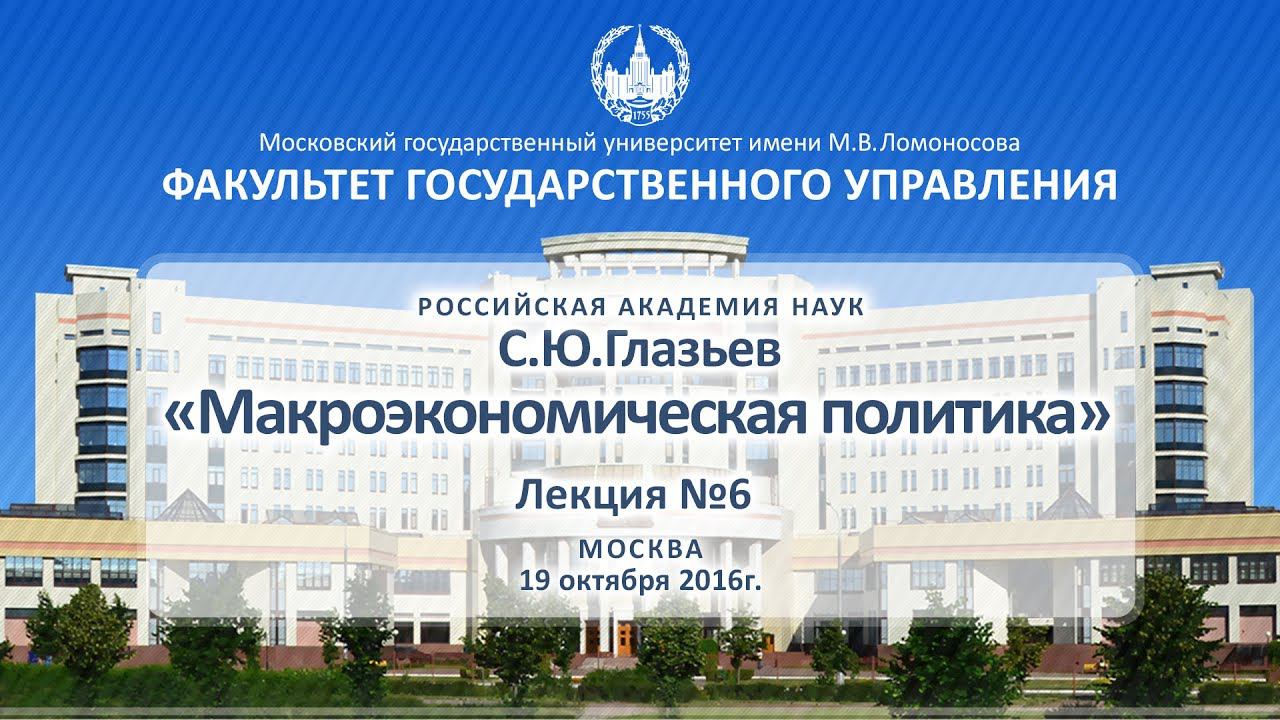 «Макроэкономическая политика» Лекция №6 ФГУ МГУ 19.10.2016