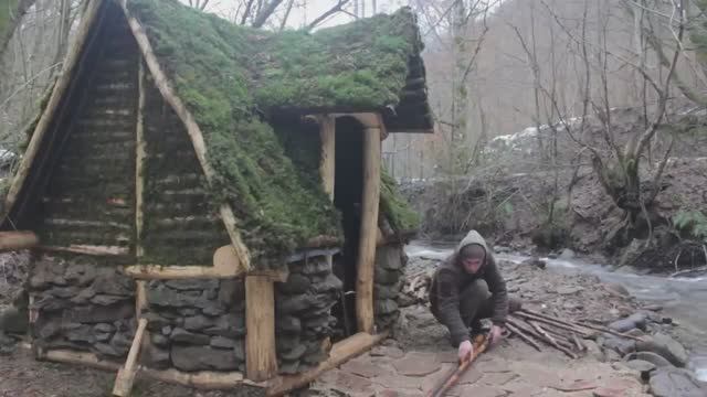 Мужчина построил дом в диком лесу за 30 дней с ванной