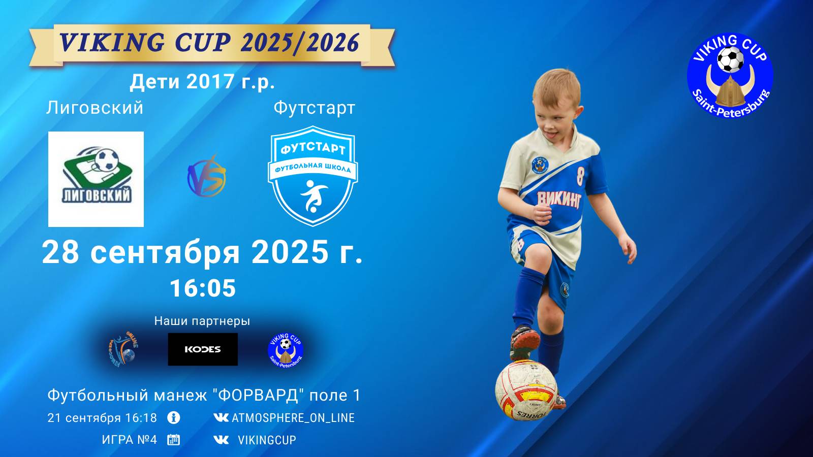 VIKING CUP среди команд 2017 г.р. (U7), Поле 1 28 сентября 2025 САНКТ-ПЕТЕРБУРГ, ФЦ "Форвард" ФК "Лиговский" - ФК "Футстарт"/VIKING CUP, Игра №4, 28-09-2025 16:05