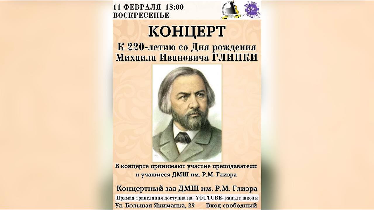 Концерт, посвященный 220-летию со Дня рождения Михаила Ивановича Глинки, 11 февраля 2024 г.