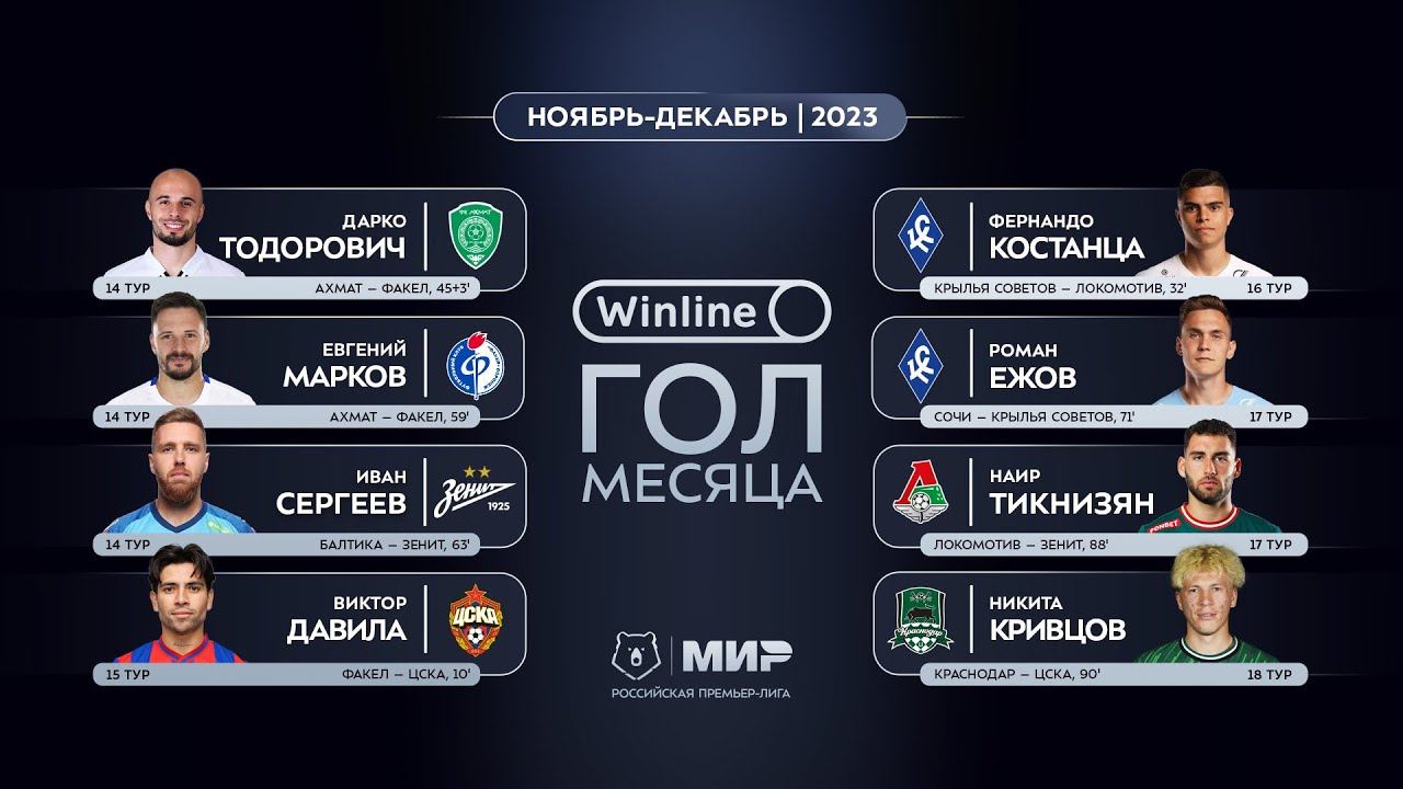 Winline гол месяца в Мир РПЛ | Ноябрь – декабрь 2023 | Претенденты