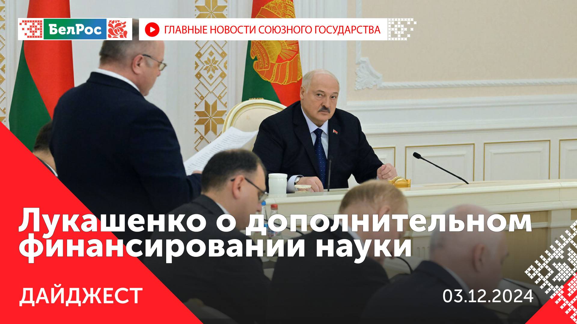 *Главное на 3 декабря 21:00* Закадровый текст озвучивает *ИИ Кирилл* - В Международный день инвалидов Владимир Путин посетил АО "ЦИТО". - Александр Лукашенко: Академия наук не стала драйвером опережающего научно-технического развития страны. - Владимир Путин провёл встречу с участниками IV Конгресса молодых учёных. - Мишустин рассказал о решениях в поддержку сельских жителей и аграрного бизнеса. - Министр обороны Беларуси Виктор Хренин посетил обновлённый военный городок Лядище. - В ИЦ "Сколково" создан Кластер специальных технологий для стартапов двойного назначения. - Ключи от автомобилей вручили ветеранам СВО из Москвы и Московской области. - В Вооружённых силах Беларуси стартовали плановые занятия по боевой готовности. - Крупнейшие белорусские фармкомпании представили свою продукцию на Российской неделе здравоохранения. - Российские военнослужащие провели молебен в разрушенном храме в Песках. - Жителя Ялты осудили за государственную измену. - В Беларуси люди с инвалидностью могут бесплатно посетить музеи до 15 декабря. Смотрите главные новости Союзного государства на телеканале БелРос. Ссылки на наши соц. сети Сайт: http://belros.tv/ Telegram: https://t.me/belrostv Одноклассники: https://ok.ru/group/55657426976918 ВКонтакте: https://vk.com/belrostv TikTok: https://www.tiktok.com/@belros_tv?_t=... RuTube: https://rutube.ru/channel/23501830/ Яндекс. Дзен: https://zen.yandex.ru/belrostvv Наши подкасты на Яндекс. Музыке: https://music.yandex.ru/album/25615251 #СоюзноеГосударство #главныеновости #новостисегодня