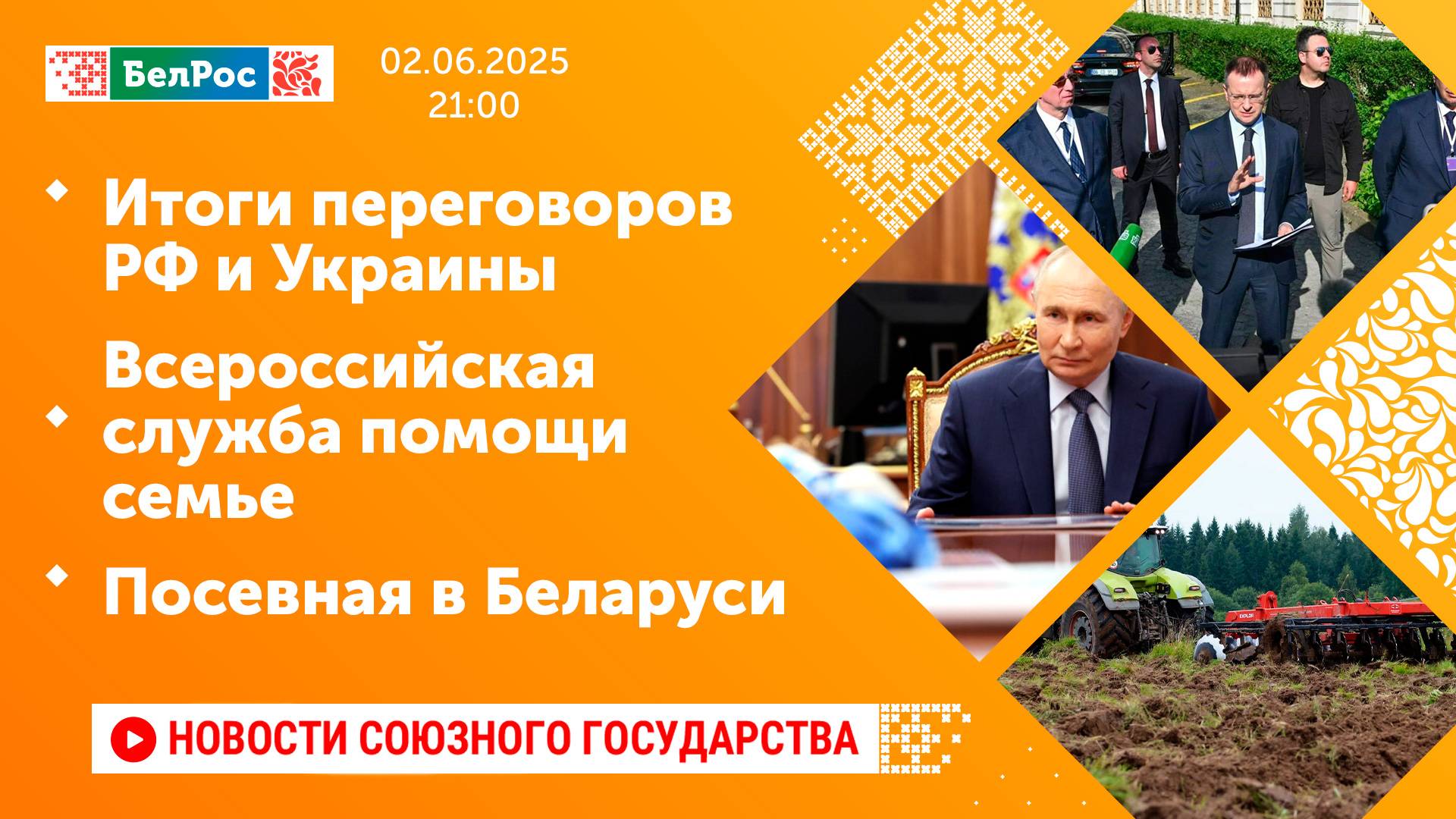 Итоги переговоров РФ и Украины / Всероссийская служба помощи семье / Посевная в Беларуси