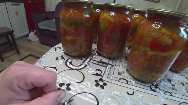 Рецепт: - 8 кг перца - 6 кг помидор - 6 крупных морковок - 2 кг лука - 6 ст. л. соли - 3 стакана сахара - 3 стакана растительного масла - 3 ст. л. 70% уксусной эссенции