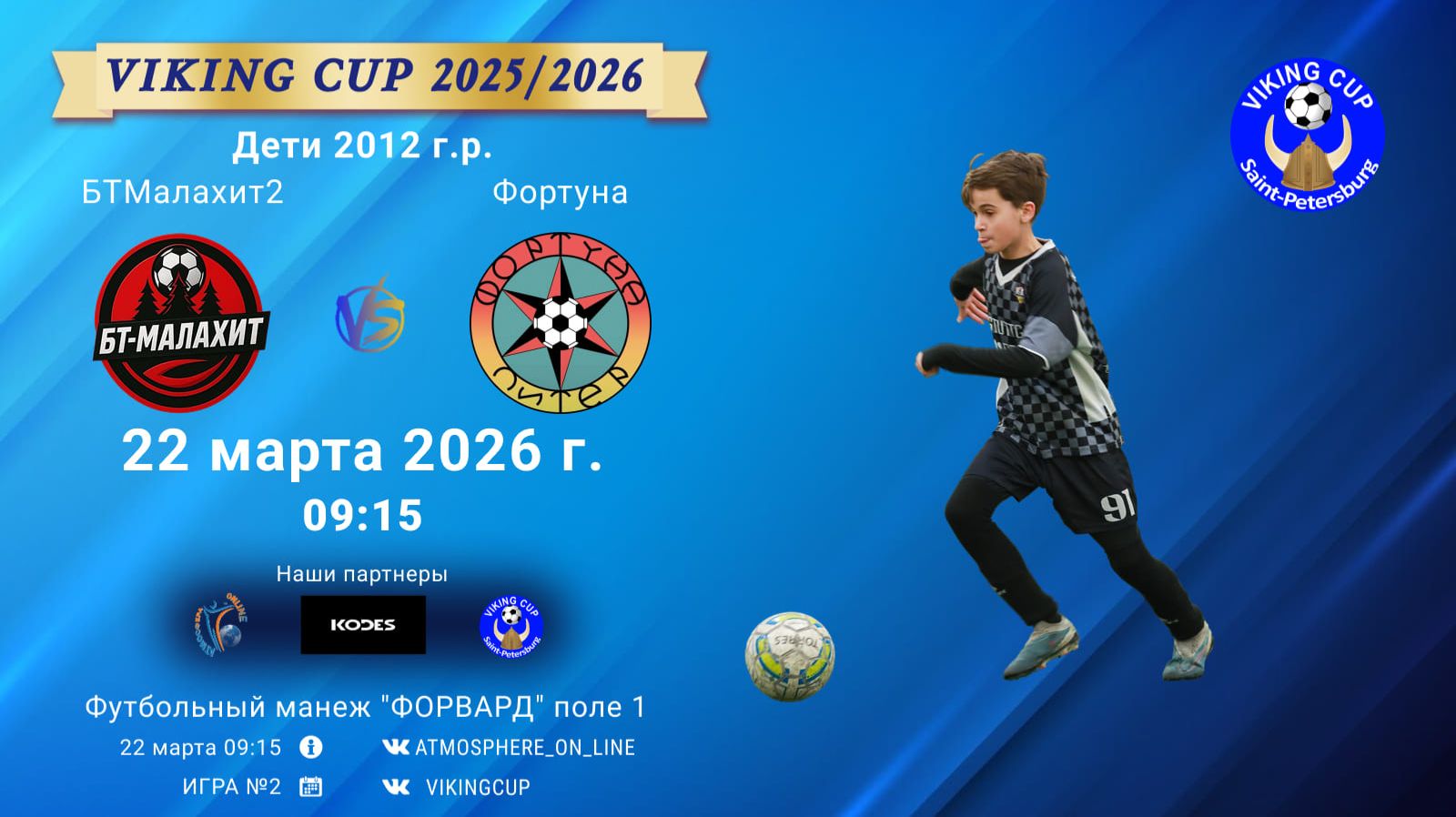 VIKING CUP среди команд 2012 г.р. (U14), Поле 1 22 марта 2026 САНКТ-ПЕТЕРБУРГ, ФЦ "Форвард" БТМалахит2-Фортуна/VIKING CUP, Игра №2, 22-03-2026 9:15