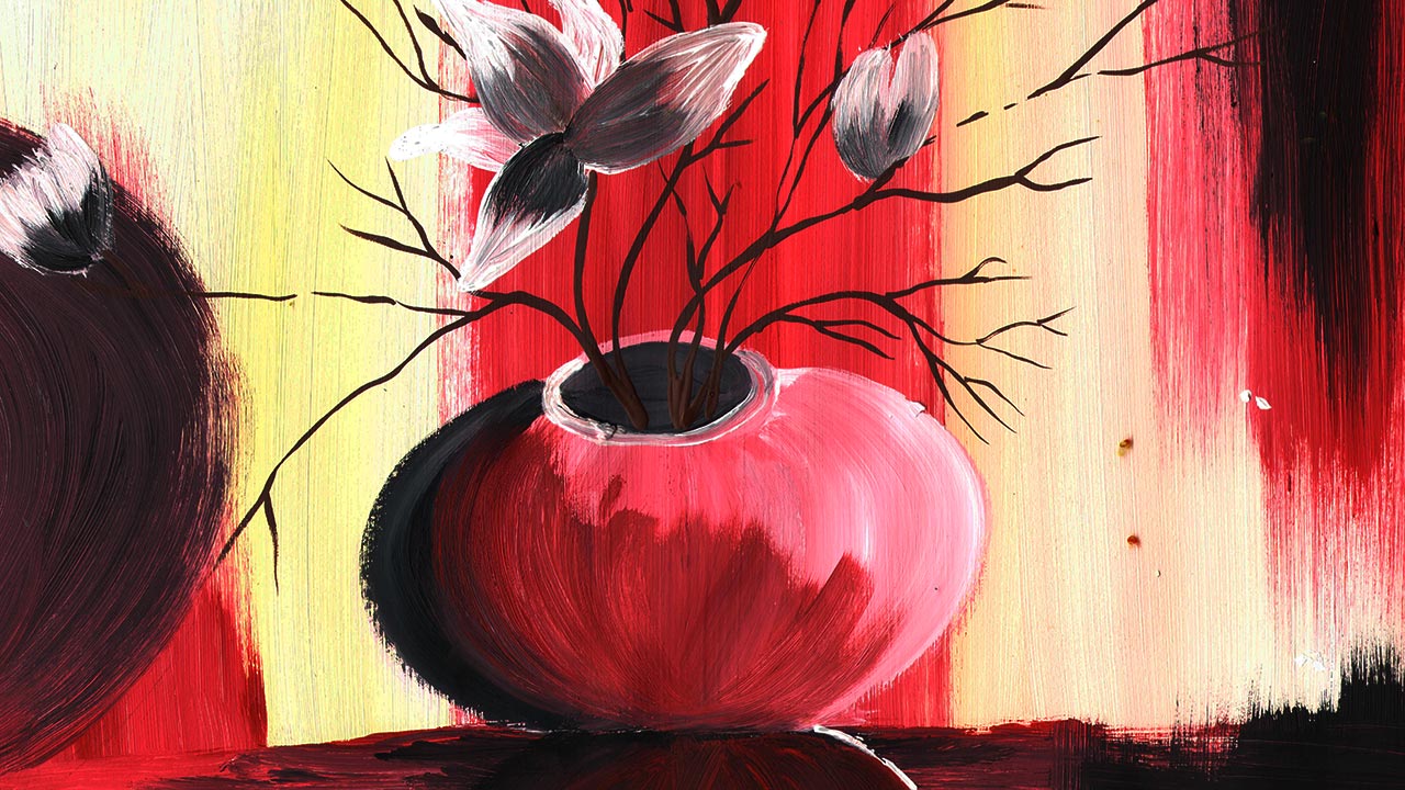 Рисуем картину для интерьера. Красный в интерьере. Рисуем цветы в вазе. Рисуем натюрморт.