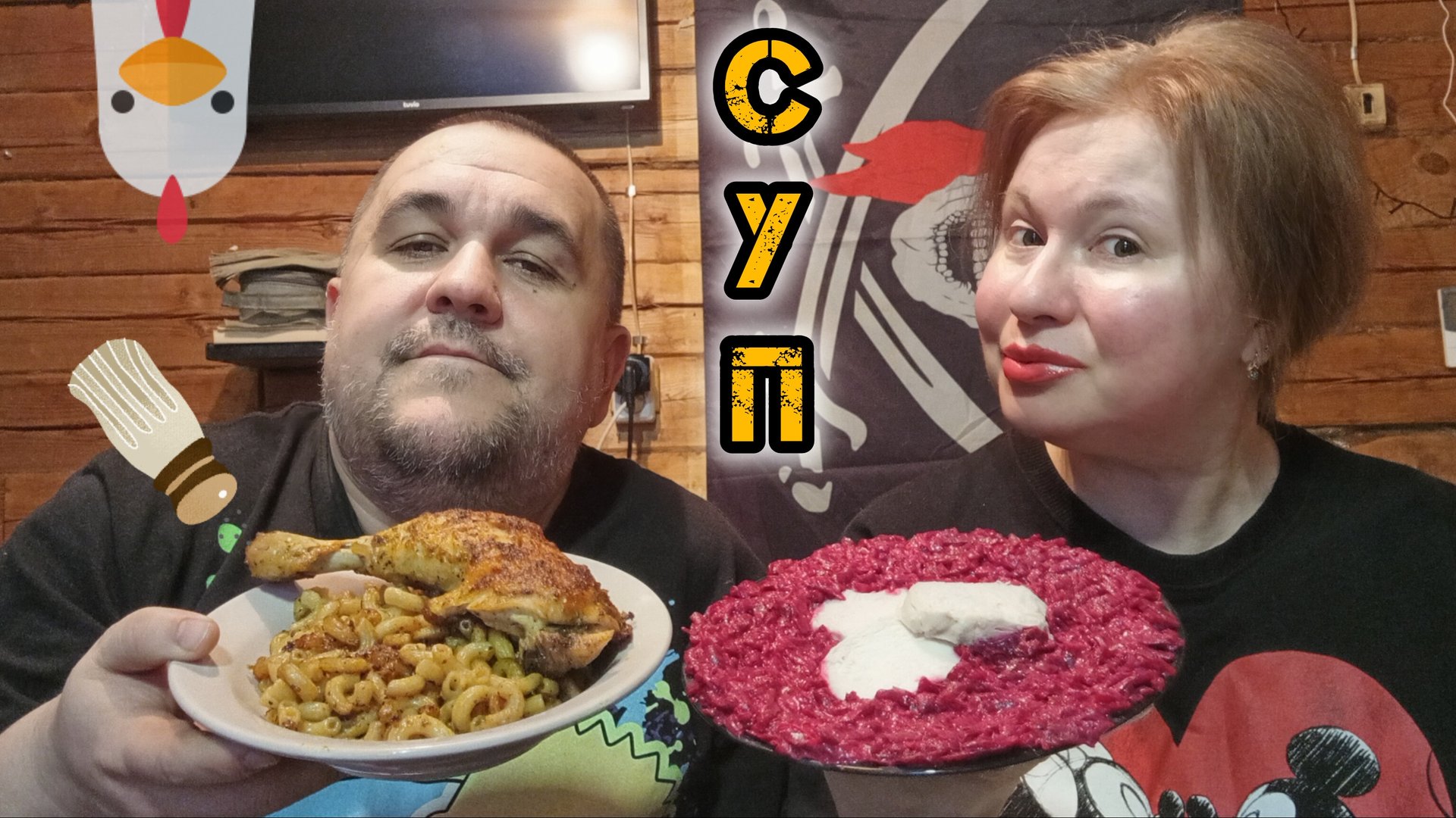 Обжор, мукбанг - гороховый суп с курицей, салат чеснок со свеклой