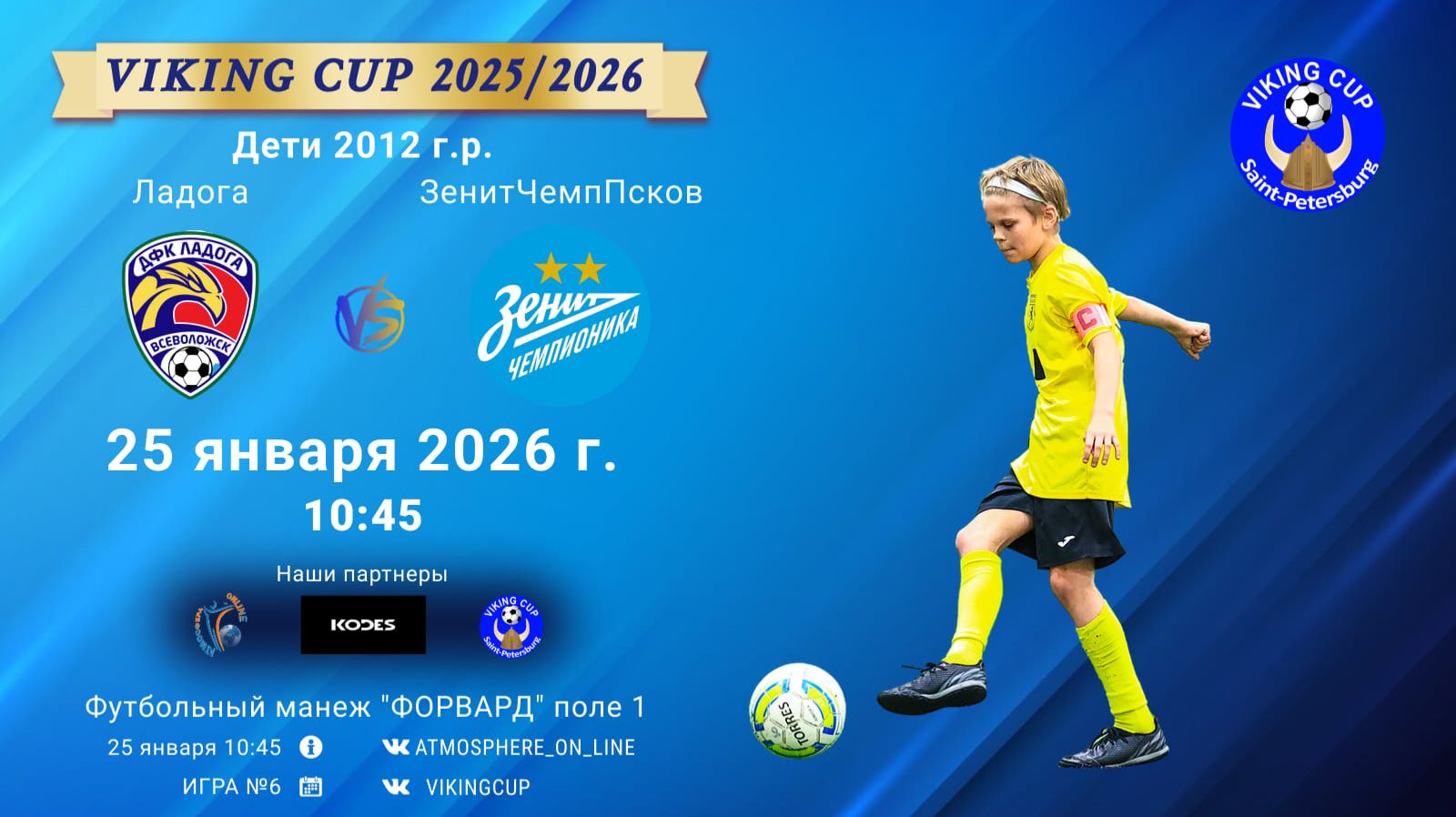 VIKING CUP среди команд 2012 г.р. (U14), Поле 1 25 января 2026 САНКТ-ПЕТЕРБУРГ, ФЦ "Форвард" Ладога-ЗенитЧемпионикаПсков/VIKING CUP, Игра №6, 25-01-2026 10:45