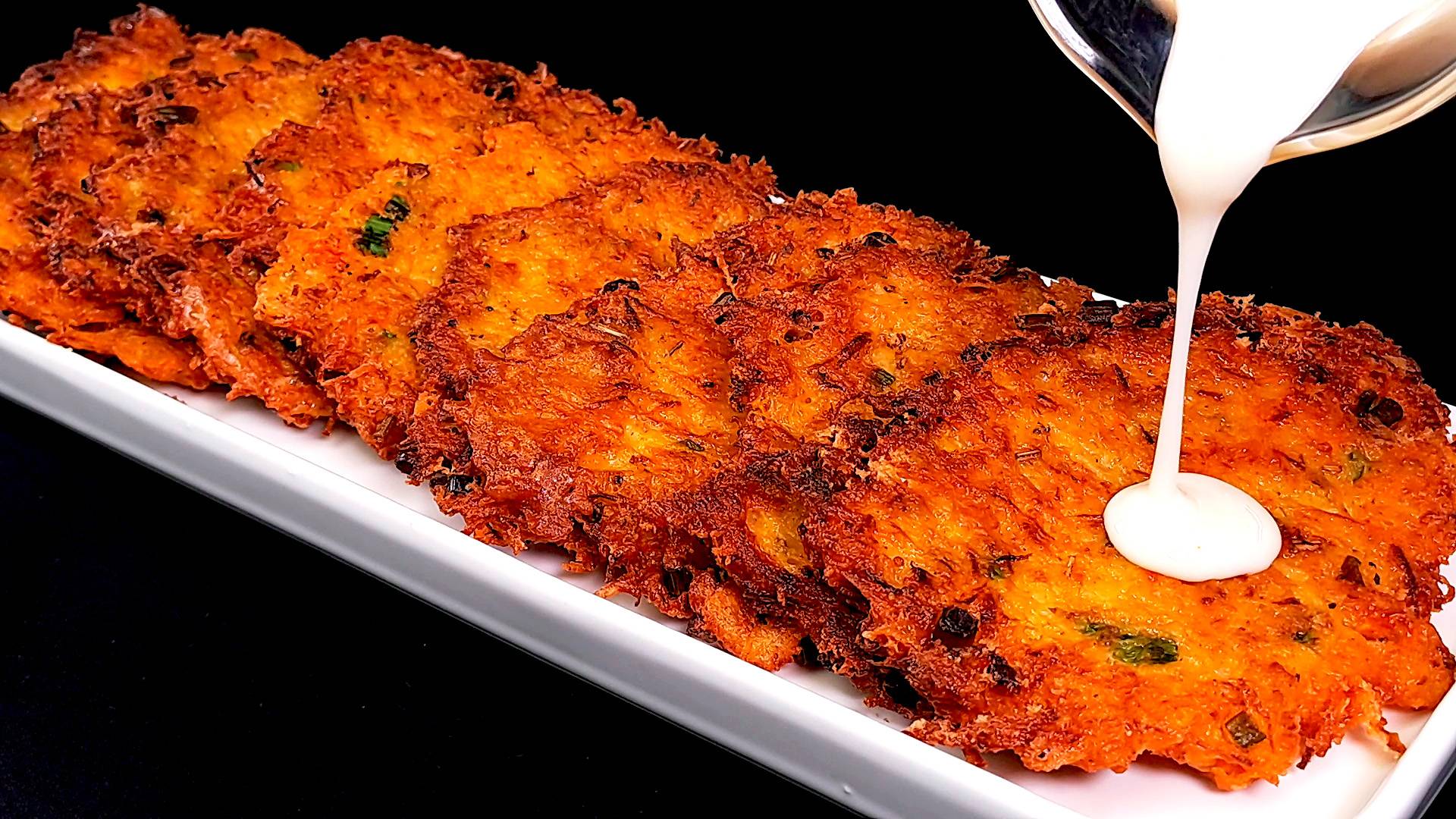 Ингредиенты для рецепта: 2 картошки. 1 морковь. 60 грамм сыра. зеленый лук. 2 яйца. 3 ложки картофельного крахмала. соль, сухой гранулированный чеснок. черный перец, сушеный базилик. паприка. растительное масло. сыр плавленый 100 грамм. 2 ложки молока. Подписывайся на канал и делись видео с друзьями. Также у меня на канале еще очень много вкусных рецептов, и еще больше рецептов ждет вас впереди. Вконтакте - https://vk.com/vkusnierecipe Одноклассники - https://ok.ru/group/70000000861442 Дзен - https://dzen.ru/vkusnierecipes https://dzen.ru/isrecipe Весь музыкальный контент, использующийся в видео на данном канале размещён на основании лицензии Creative Commons 4.0 вариант лицензии CC0 (https://creativecommons.org/licenses/by/4.0/) с медиатеки, где не требуется указания авторства.