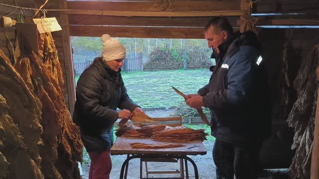 Поливаем парник. Готовим землю к посадкам. Начали жилковать лист. Оберточный лист на сигары