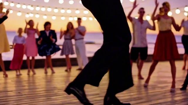 Красивый танец в кафе на набережной.