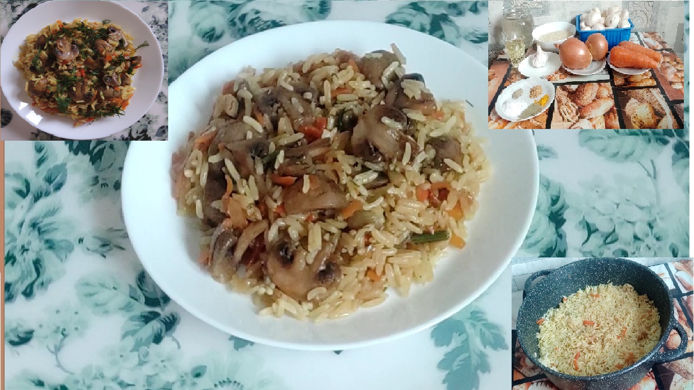 Плов постный, диетический с грибами.