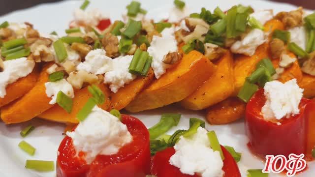 Салат из запечённой тыквы и орехами и творожным сыром.