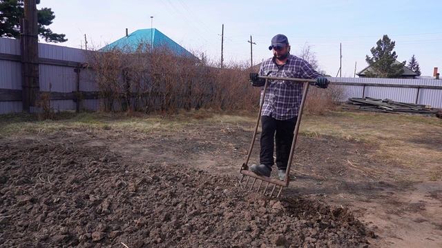 Вскапываю ЗЕМЛЮ ПОД КАРТОШКУ Ем суп с сёмгой Обычный безработный день человека из деревни
