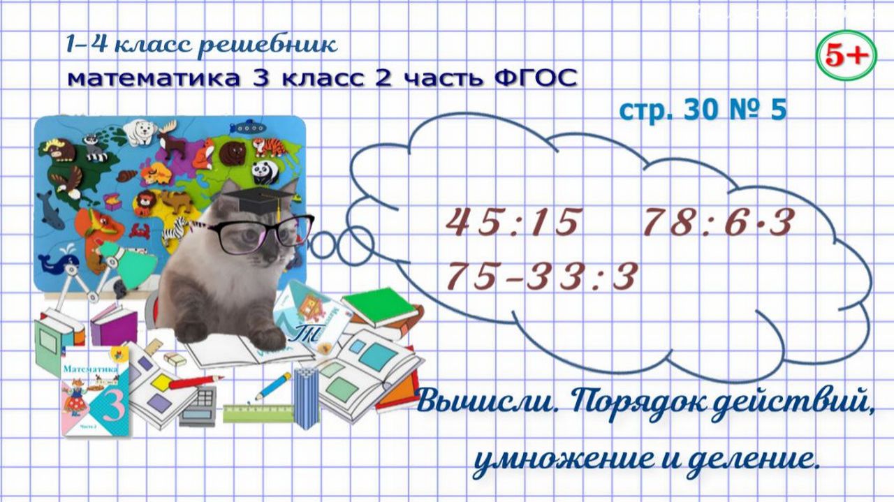 Стр. 30 № 5 математика 3 класс 2 часть вычисли, порядок действий, умножение и деление Моро ФГОС гдз