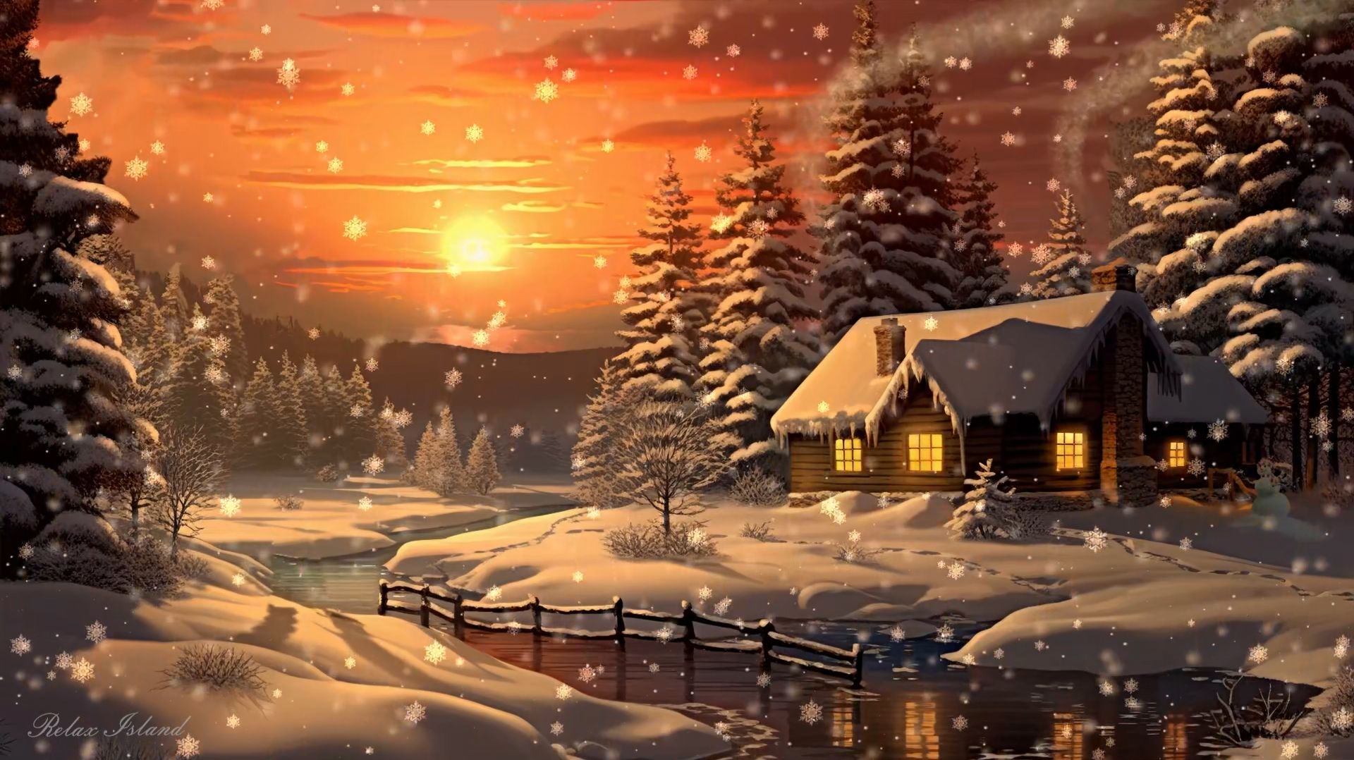 Просто сказочно красивая успокаивающая музыка для сна и восстановления нервной системы в домике у реки! Хорошо расслабляющая музыка для души в лучах заката во время снегопада! В доме на берегу в окнах горят огни, из трубы идёт дым, солнце опускается за горизонт окрашивая всё вокруг в оранжевые тона и медленная музыка для медитации создают идеальную атмосферу для релаксации! Снег падает густо и мягко, словно укрывает берег и реку тёплым белым покрывалом. Вода течёт неспешно, тёмная и спокойная, и только местами подо льдом слышится тихое шуршание течения. На фоне закатного света снежинки вспыхивают золотыми искрами и медленно растворяются в сумерках, а воздух становится прозрачным и чуть звенящим от морозной свежести. Домик у реки выглядит особенно уютно: в окнах горит тёплый свет, на стекле проступают узоры, а из трубы тянется ровная струйка дыма, уходящая в оранжевое небо. Где-то рядом поскрипывает крыльцо, и иногда с крыши соскальзывает ком снега, падая в сугроб с глухим мягким звуком. Всё вокруг будто говорит: можно остановиться, выдохнуть и наконец-то отдохнуть. Медленная музыка для медитации звучит плавно и нежно, как тихая колыбельная. Она наполняет пространство спокойствием, помогает расслабить тело и отпустить усталость, накопившуюся за день. Дыхание становится ровнее, мысли — тише, и в этом спокойном ритме легко почувствовать, как возвращается внутреннее тепло, как нервная система постепенно приходит в баланс. Закат темнеет, оранжевые оттенки сменяются розовым и лиловым, а затем уходят в глубокую синеву. Снегопад не прекращается, и река кажется ещё более тихой, словно слушает музыку вместе с домом и лесом на другом берегу. Внутри — тепло, мягкий свет, спокойные звуки; снаружи — зимняя тишина и мерцающий снег. И чем глубже становится вечер, тем сильнее ощущается это редкое чувство защищённости и покоя. Можно просто смотреть в окно, как снег медленно кружится в воздухе, слушать музыку и позволить себе погрузиться в сон — глубокий, восстанавливающий, такой же мягкий и спокойный, как этот зимний закат у реки. При создании видеоролика была использована музыка: https://pixabay.com/ru/music/relaxing-music-vol1-124477/ #МузыкаДляДуши #МузыкаДляСна #МузыкаДляМедитации #ЗвукиПрироды #Медитация #ЗвукиДляСна Видео оригинальное, было создано владельцем канала в 3D программах и аудиоредакторах. © Relax Island 2026. Все права защищены.