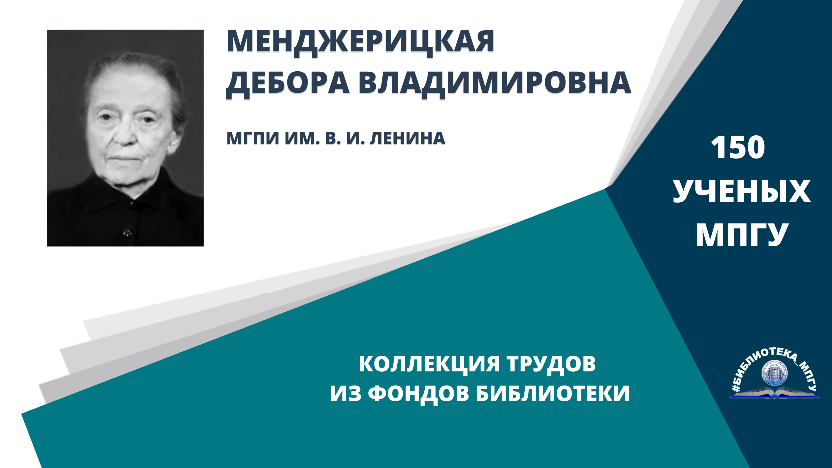 Профессор Д.В.Менджерицкая. Проект "150 ученых МПГУ- труды из коллекции Библиотеки вуза"