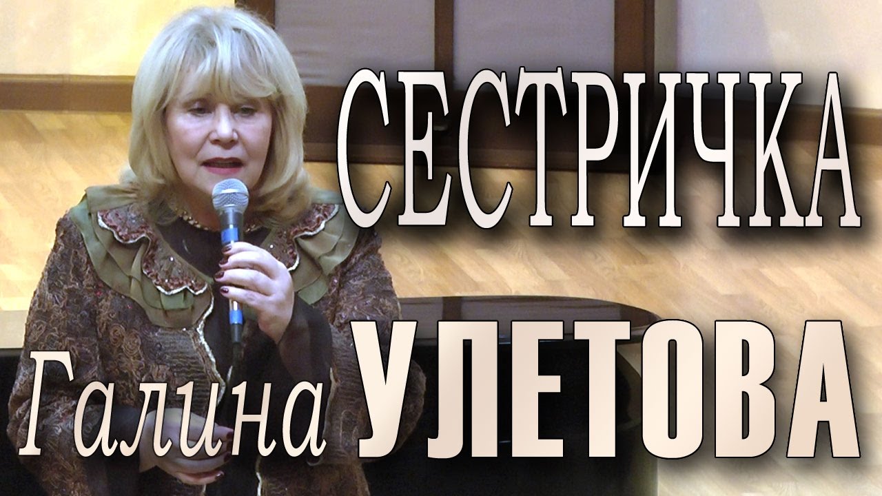 Сестричка. Музыка Марка Фрадкина, стихи Игоря Шаферана. Поёт Галина Улетова. Фрагмент концерта Международного фестиваля «МОСКОВСКАЯ ОСЕНЬ-XXXVIII» («Союз московских композиторов», 19 ноября 2016 года). Плейлист концерта фестиваля «МОСКОВСКАЯ ОСЕНЬ-XXXVIII»: https://www.youtube.com/playlist?list=PLQl7V53W31BBBI7q8NUimtYztuTm9HDCE Страница сайта «Союза московских композиторов», посвящённая Международному фестивалю «МОСКОВСКАЯ ОСЕНЬ-XXXVIII» http://xn--b1aanbebkbbpfqcbebcaoyded7a1etm.xn--p1ai/mo/moxxxviii/moxxxviii.htm Съёмка концерта - «РЕТРОпортал.ру»: https://www.retroportal.ru/