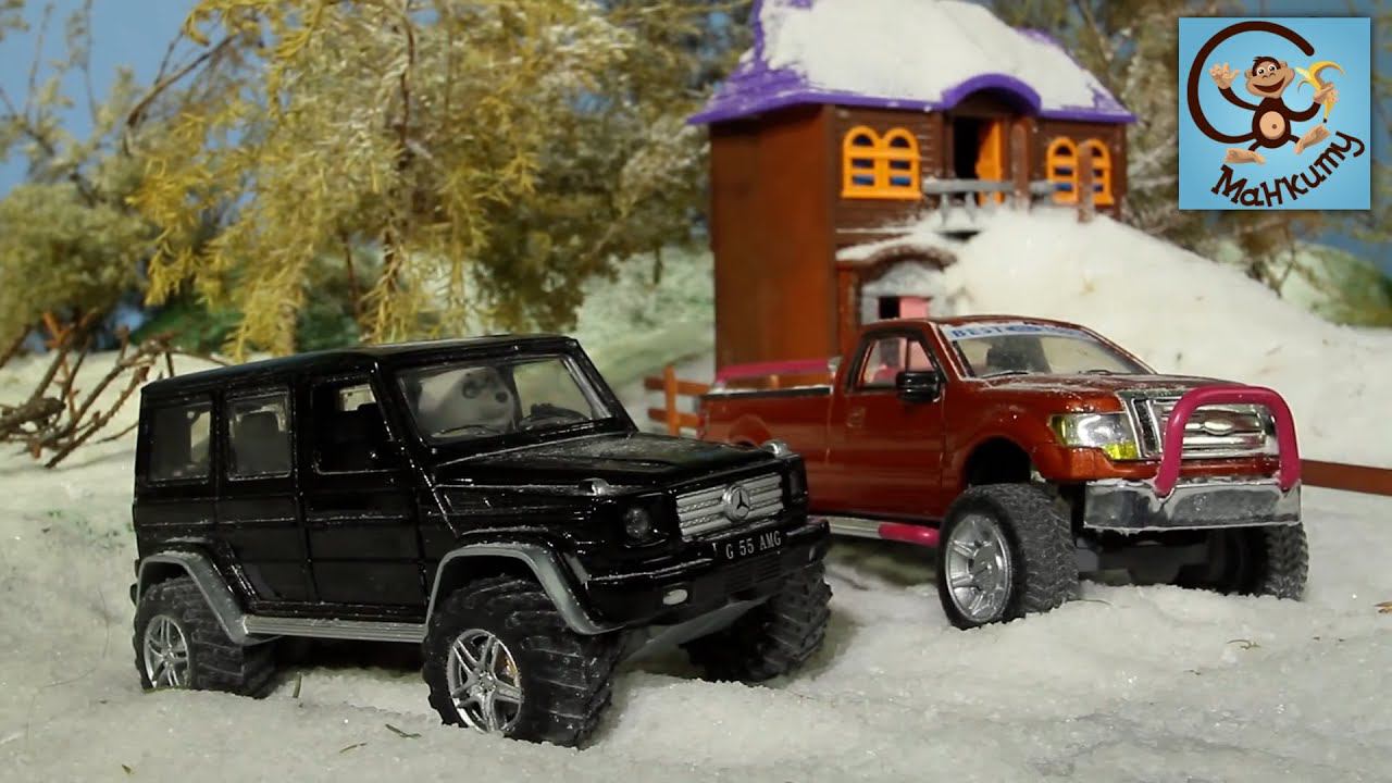 Привет. В этом видео мы покажем тебе истории про Машину и Медведя Панду и их Машины. В городе игрушек наступила зима. Надо подготовить машины к езде по снегу. А еще зима - это время кататься на снежных горках, которые поможет построить погрузчик. Зимой машинам на улице холодно, поэтому надо построить дом для машинок.