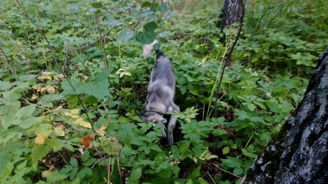 У Хаски отличный нюх ! Учуяла кого то под деревом и начала раскапывать его !
