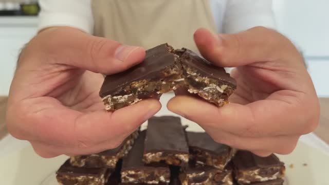 Поддержите пожалуйста канал, мы очень сильно стараемся для Вас , что бы Вам было интересно , реквизиты ниже в описании . Спасибо . СБЕР. 2202 2032 4086 8523 ТИНЬКОФФ 2200 7007 3056 0918 Друзья, привет ? ! Сегодня мы приготовим невероятные вкусные злаковые батончики. 80 г овсяных хлопьев. 100 г изюма. 80 г грецких орехов мелко измельчить. Друзья, подписывайтесь на канал. Ставьте лайк этому видео ?. Это помогает каналу развиваться ❤️. 100 г сушеных абрикос так же мелко нарезать. 1 банан. Размять банан в пюре. Тщательно перемешать. 25х15 размер формы. Выпекать в разогретой до 180°C духовке 20 минут. 160 г темного шоколада без сахара. Растопить любым удобным способом. Друзья, вы любите мандарины? 1 чайная ложка растительного масла. Поместить в холодильник на 40 минут. Нарезать на порционные кусочки. В результате получается очень вкусный и здоровый завтрак! Приятного аппетита, друзья!