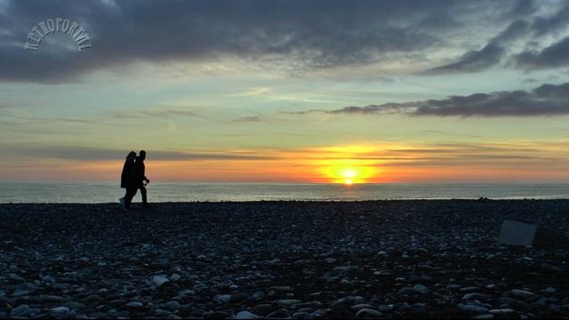 Зарисовка «Море... Время... Люди...». Закат на Чёрном море в районе Адлера. Морской прибой и шаги прогуливающихся по берегу моря. Вечернее солнце, облака. Чёрное море зимой. Вечер на море...