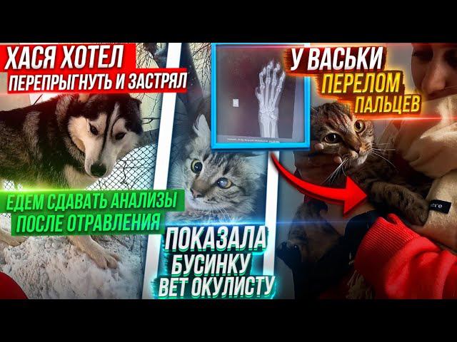 Хася кричал, оказалось♀️. у Васьки перелом♀️ Попытаемся Бусе восстановить глаз. Анализы Хаси.