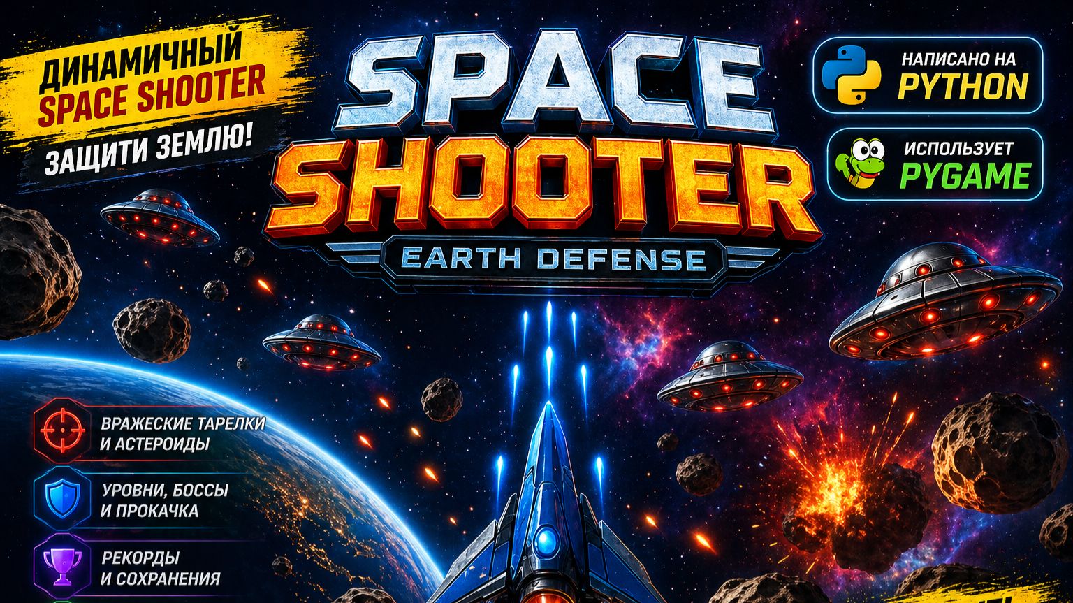 Данное видео посвящено разработанной на Python игре Space Shooter. В видео показано прохождение игры состоящей из 50 уникальных уровней.