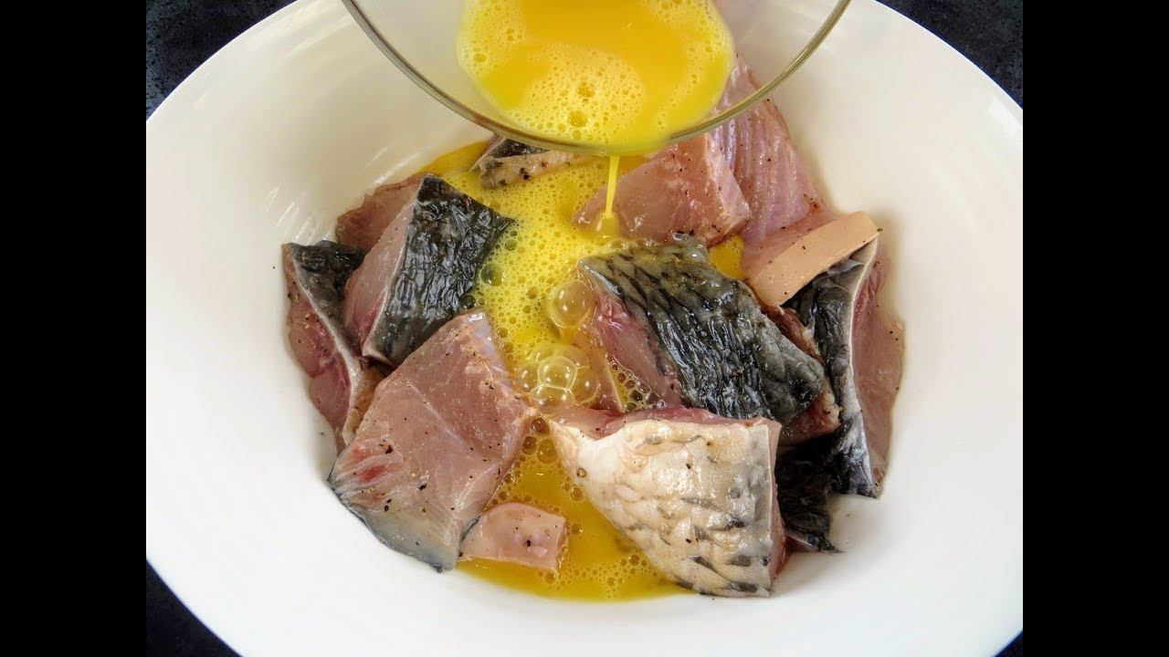 Сначала заливаем рыбу яйцами, а потом соусом / Закуска из жареной рыбы