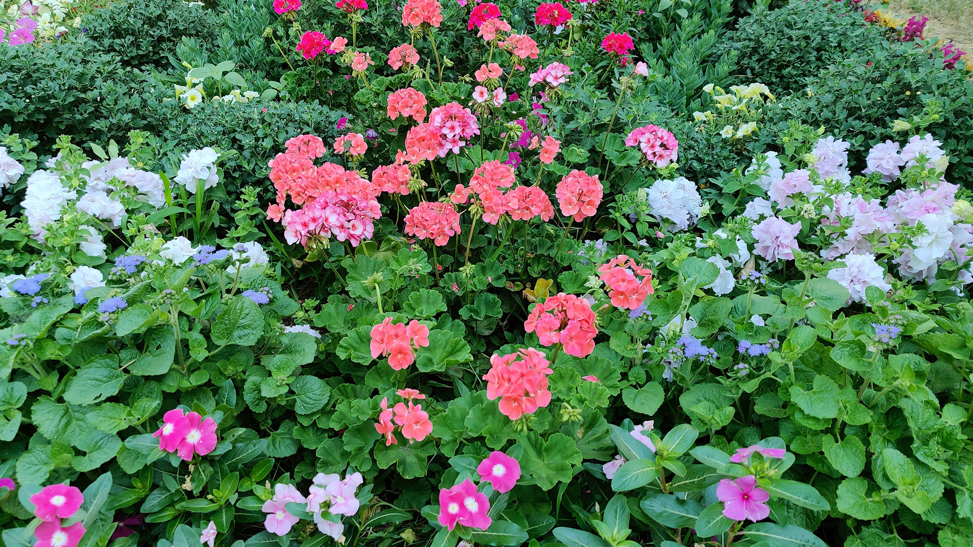 15 июня цветник номер 1 уже имеет много ярких цветущих растений. Многолетние хризантемы, сентябрины, очитки видные являются фоном для ярких пеларгоний разных сортов (Диани персиковая, Розита ярко розовая и другие), петуний махровых, кустовых и ампельных. Уже расцветают катарантусы и агератум. Давно около трех недель цветут прекрасные бордюры из лобелий, гацаний и низкорослого львиного зева. На клумбе кроме перечисленных цветов подрастают 6 полянок разных сортов эустом Подписаться на яндекс.дзен - https://zen.yandex.ru/id/622c37642a9afa0de1f5a28d Подписаться на Rutube - https://rutube.ru/channel/26254921