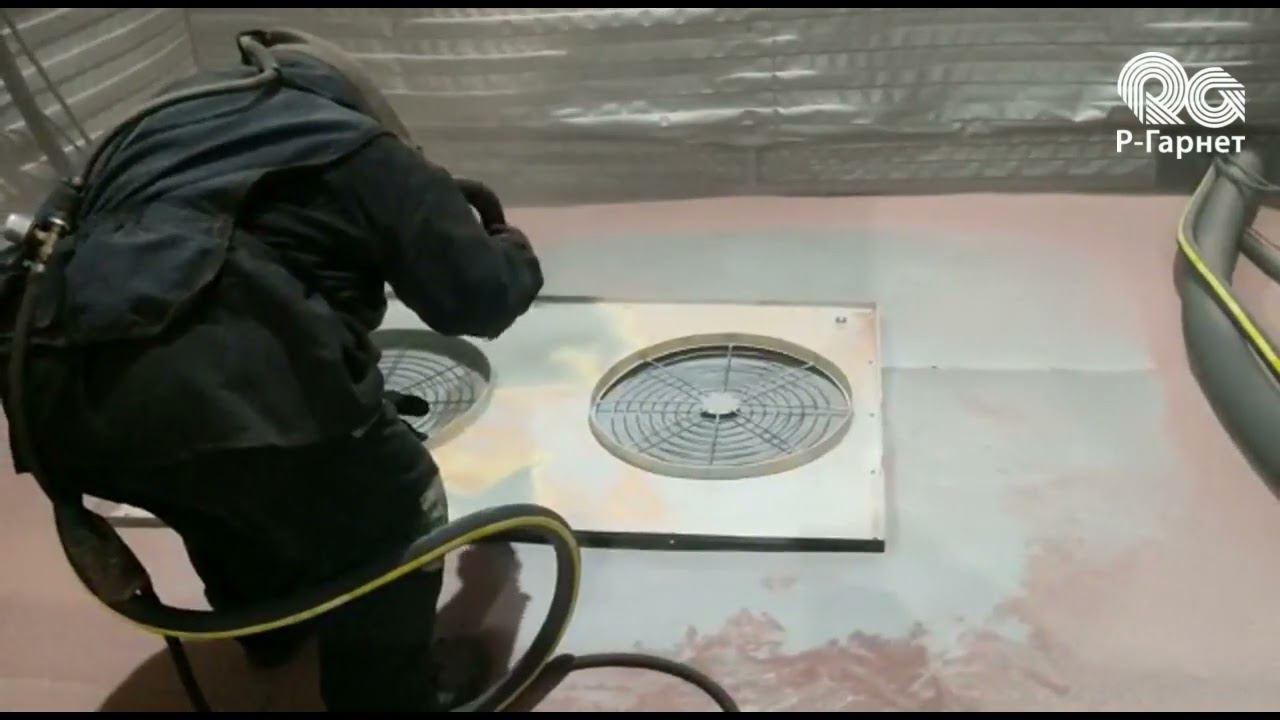 Пескоструйная обработка гранатовым песком GMA garnet алюминиевых изделий из тонкого профиля.