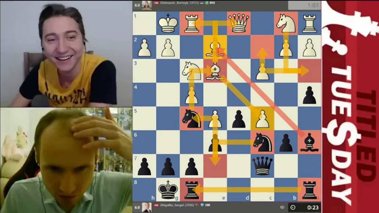 Битва за ОЧКО! Александр Бортник - Сергей Жигалко 16.08.2022 МГ Александр Бортник (канал) - https://www.twitch.tv/bortnyk_chess МГ Сергей Жигалко (канал) - https://www.youtube.com/c/SergeiZhigalkoChess