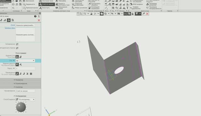 HUBMOD.RU Бесплатные Демо-Уроки — посмотрите и убедитесь: Всё просто и понятно! Компас 3D листовое моделирование. Как и в предыдущем уроке, прежде чем начинать создавать тело, я на рабочей поверхности программы Компас 3D вывожу изображение чертеж будущей детали, чтобы все было видно и не тратить лишнего времени для перехода из одного окна в другой. наша деталь имеет квадратную форму. Где-то чуть ниже у нее есть круглый вырез. Изначально я выбираю плоскость. По заданным размерам рисую максимально большие размеры будущей фигуры. В данном случае они Затем инструментом листовое моделирование мы превращаем эскиз в лист. Задаем ему толщину 1 мм условно. Далее на эскиз мы должны нанести линии, которые впоследствии будут линиями сгиба. Для этого мы на плоскости листового моделирования листового тела создаем очередной эскиз. На этом эскизе отрезками с размерами взятыми с чертежа выставляем опорные точки. От них проводим линии, которые впоследствии будут линиями сгиба. Инструментом отрезок мы задаем угол равен нулю, чтобы он был строго, параллельно линии внизу и перпендикулярно боковой стенке. И наносим, собственно, линии сгиба. Тут всего у нас три линии сгиба. Расстояние на чертеже обозначено. Итак, линии сгиба мы все нанесли, Расстояние расположения друг относительно другой этих линий и начинаем сгибать листовое тело она прежде чем начать сгибать листовое тело мы еще должны нанести отверстие на листовое тело для этого мы ставим опорные стенки опорные отрезки чтобы нам сделать опорные точки и Мы находим центр окружности, которая впоследствии будет вырезана. Далее задаем диаметр этой окружности и наносим ее на эскиз, который впоследствии будем выгибать. Вот мы нанесли окружность. Сейчас убираем всевозможные мусорные линии. Затем инструментом вырез в листовом теле мы вырезаем данную окружность из листа. И нам остается только по указанным линиям согнуть листовое тело. Для сгибания также пользуемся инструментом сгиб по линии. Выбираем линию, выбираем плоскости, выбираем направление, выбираем неподвижную сторону и, собственно, сгибаем. Так мы делаем все три сгиба.