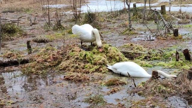 Как лебеди строят гнездо