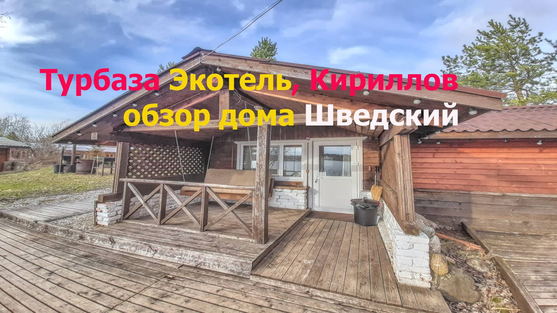 Румтур - обзор по дому с названием Шведский - отдельный двухместный коттедж на берегу озера Сиверское рядом с городом Кириллов, напротив Кирилло-Белозерского монастыря. Спальня, санузел, веранда с мангальной зоной, набор посуды, холодильник, тв, wifi в номере.