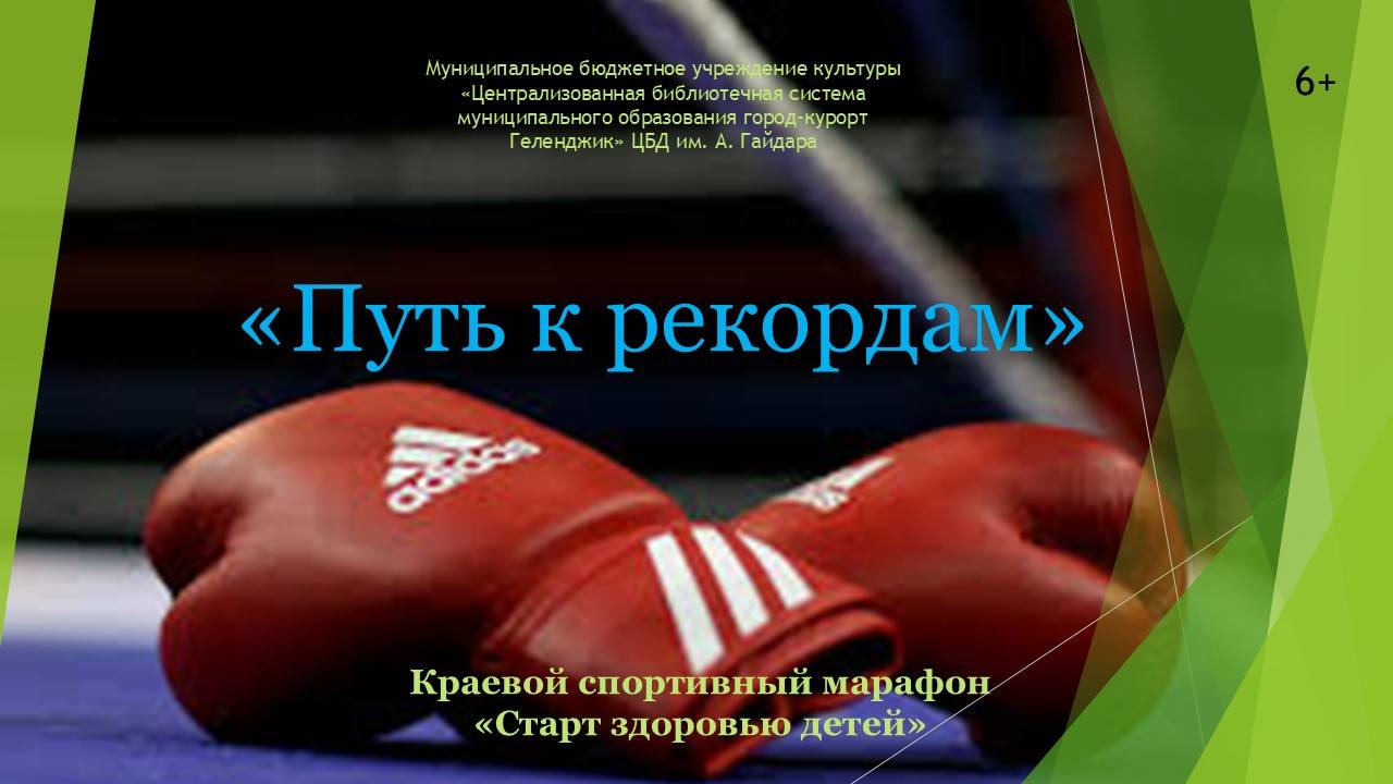 В рамках краевого проекта-марафона «Старт здоровью детей» Центральная детская библиотека им. А.Гайдара представила спортивное видео-приветствие Трывоги Андрея Андреевича - мастера спорта России по боксу, чемпиона России, победителя всероссийских, краевых и муниципальных турниров, участника чемпионата Европы по боксу. Он рассказал об одном из героических видов спорта - боксе. Спортсмен подчеркнул, что достиг высоких результатов благодаря терпению, самодисциплине, упорству, здоровому образу жизни и призвал читателей Большого Геленджика присоединиться к марафону здоровья. #ЧитающийГеленджик, #БиблиотекиГеленджика, #ЗОЖ, #Старт_марафона_здоровья