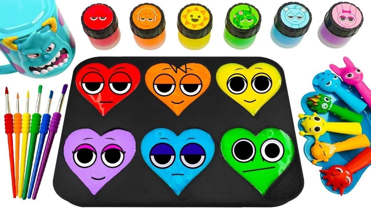 Успокаивающее видео | Как сделать радужные 6 спрунковых лиц в форме сердечек и конфет. ASMR