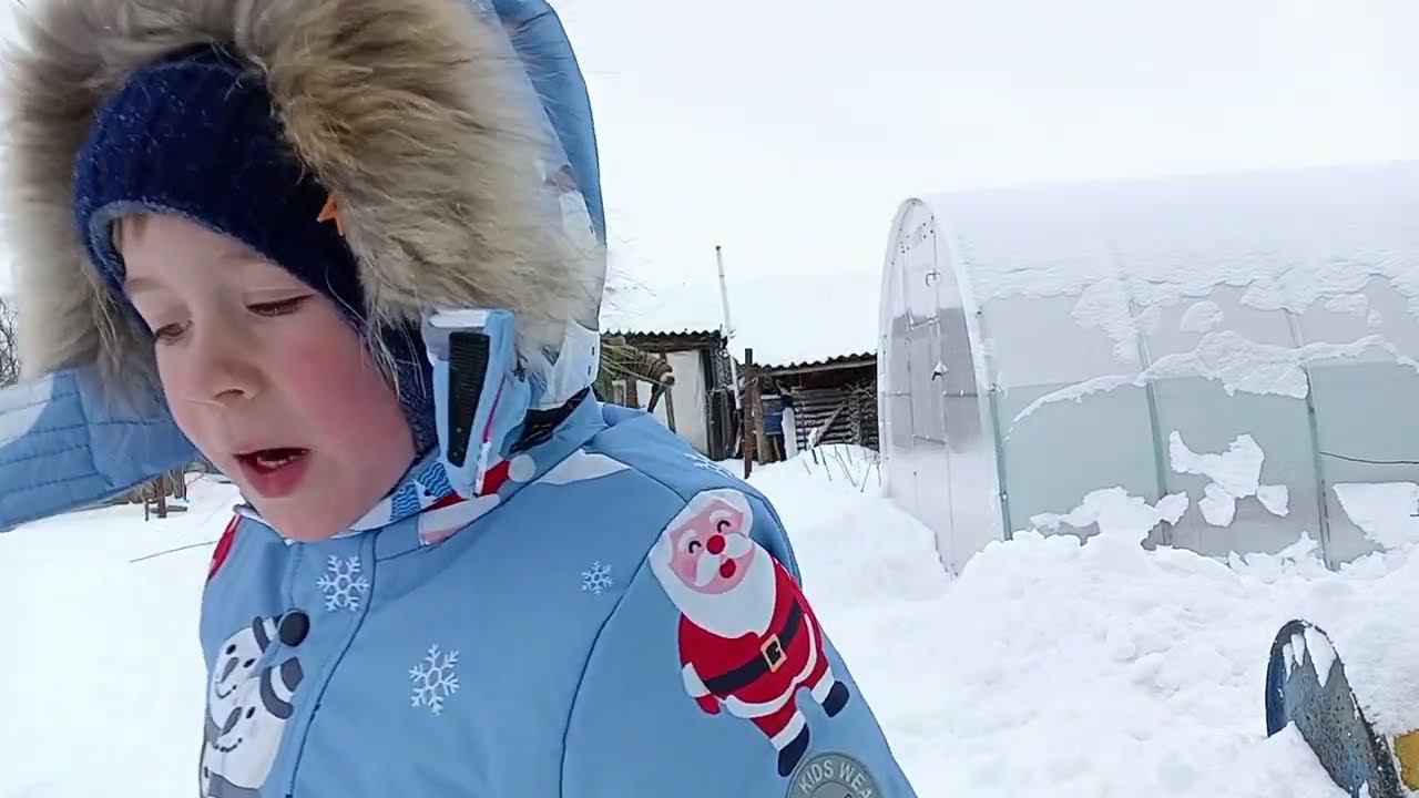 Деревенские будни.Снег, снег. Откапываемся в внуком .
