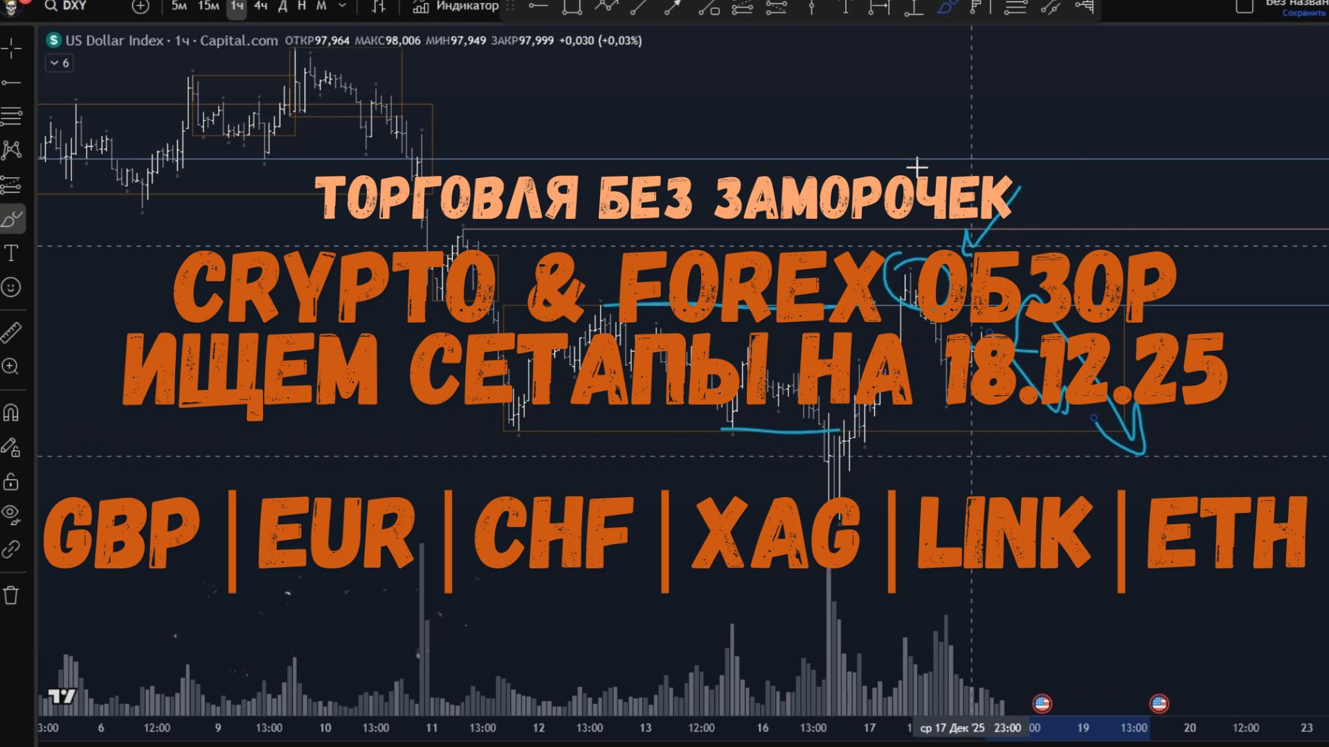 Всем салют! С вами Ден и «Трейдинг без заморочек». Сегодня обзор рынка на 18 декабря: форекс, крипта, индексы и металлы на дневных и часовых таймфреймах. Вчера рынок порадовал жирными движениями, сегодня идей меньше, но рабочие сетапы всё ещё есть. Разобрали ключевые манипуляции, пробои, тесты уровней и сценарии, где стоит торговать, а где лучше пропустить и не лезть в рынок. ⚠️ По крипте ситуация неоднозначная — много активов стоят у дневных уровней покупателя, поэтому торгуем аккуратно и только лучшие сетапы. Все уровни, алерты и сделки — в телеграм-чате трейдеров. С вас комментарий за бесплатный обзор и всем профита! 📲 Telegram с идеями и алертами: 📢 Telegram-канал → https://t.me/+Y5E6bMto4A1jMDYy 📡 Группа с алертами → https://t.me/+DDTG4iGhkPcwMjQy И самое интересное — теперь появился живой чат со мной и другими трейдерами! https://t.me/ChatTraidingsBot