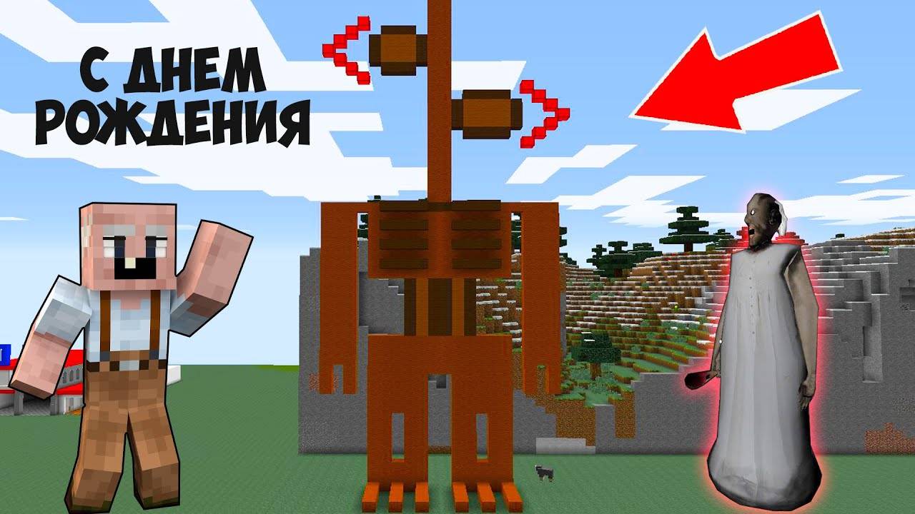 ДЕД И БАБКА ГРЕННИ ПОСТРОИЛИ СТАТУЮ SCP СИРЕНОГОЛОВЫЙ В МАЙНКРАФТ SIREN HEAD MINECRAFT