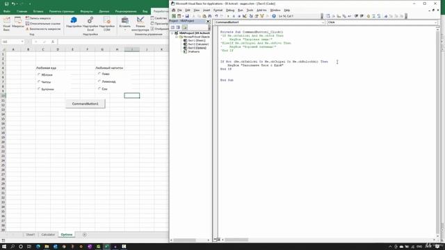 12 Проверка заполнения группы переключателей. Cпособ 1. ActiveX. Программирование макросов.