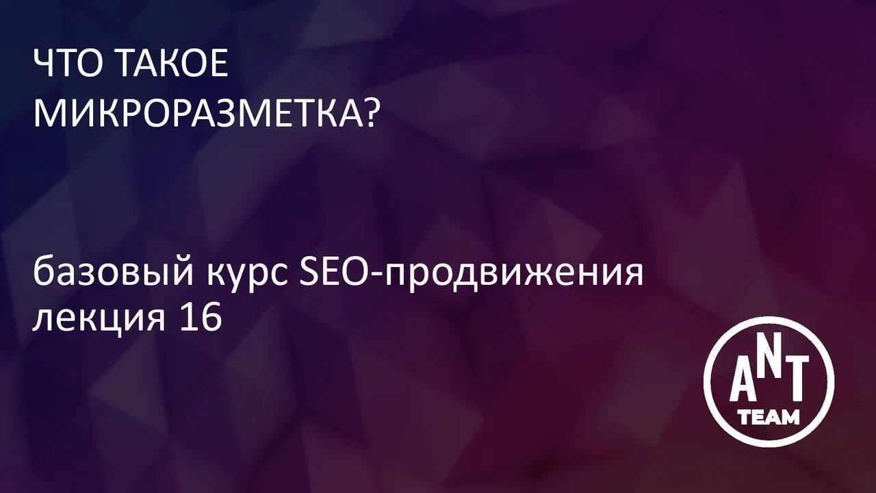 Наш telegram канал - https://t.me/seoantteam Наш сайт - Ant-Team.ru В данной лекции мы рассматриваем, что такое микроразметка и зачем она нужна, знакомимся с основными понятиями, связанными с ней. Также рассматриваем различные словари микроразметки, их особенности и виды синтаксиса для ее внедрения. Материалы лекции: Open Graph: Официальный сайт: https://ogp.me/ Генератор HTML-кода для Open Graph тегов: прекратил существование =( Проверка кода до внедрения: https://developers.facebook.com/tools/debug/ Microformats: Официальный сайт: http://microformats.org/wiki/Main_Page Валидатор: https://webmaster.yandex.ru/microtest.xml Dublin Core: ГОСТ: https://docs.cntd.ru/document/1200163563 Варианты сервисов для генерации кода: https://webcode.tools/ https://microdatagenerator.org/ https://www.htmlstrip.com/ https://technicalseo.com/tools/ https://hallanalysis.com/software/ Содержание: 0:00 - Вступление 0:24 - Что такое микроразметка: основные понятия 2:14 - OpenGraph 4:03 - Microformats 4:57 - Dublin Core 5:56 - GoodRelations и Data Vocabulary 6:44 - Schema.org 8:12 - Синтаксис RDFa 8:35 - Синтаксис Microdata 9:17 - Синтаксис JSON-LD 10:34 - Подводим итоги Пройти тест по 16 лекции: https://forms.gle/VRzPcd6XuE1s3db76