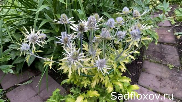 Сегодня хочу поделиться с вами растением под названием синеголовник, сорта Нептунес Голд. Синеголовник я отношу к экзотическим и неординарным растениям в нашем саду. Начнем с того, что рано весной, когда он выходит из земли, у него очень яркие, насыщенные, лимонно-желтые листья. Кожистые листья растут достаточно долго, а к июлю появляются первые синие цветки. Которые похожи на цветки почти всех синеголовников, у которые все цветки почти одинаковые. Очень красиво и оригинально сочетание ярких, желтых листьев и синих цветов. К сожалению, к концу сезона золотистые листья меняют окрас на более желтовато-зеленый. Так же мне очень нравятся предцветники сенеголовника. Они желтого цвета, с серебристыми прожилками, встречаются и голубоватые. Для меня единственный минус синеголовника в том, что он колючий. Поэтому я его немного подставила, чтобы он не вылезал на дорогу, когда я хожу мимо и не колол меня. А так это очень красивое и экзотическое растение. Думаю, что если бы синеголовников посадить в саду побольше, то они бы создали свою особенную, южную атмосферу. Советую это интересное растение всем любителям чего-нибудь странненького. Посмотреть, выбрать и возможно даже купить мои многолетники можно здесь: https://sadfloxov.ru/mnogoletniki.html #синеголовник