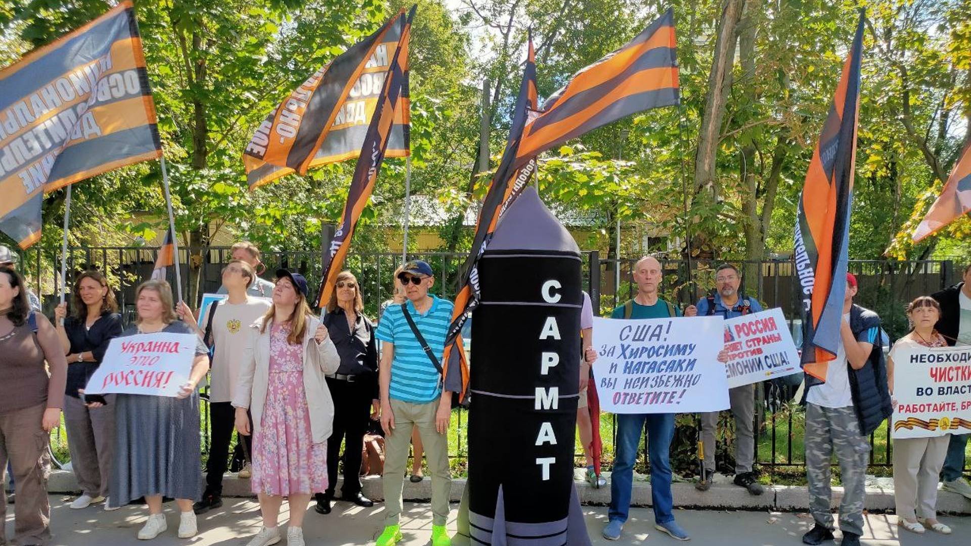 9 августа 2024 года у посольства США в Москве в день атомных бомбардировок Хиросимы и Нагасаки. Корреспондент Информационного Агентства "Русский Вектор Стратегического Назначения" (ИА РВСН) Ольга Бегунова пообщалась с пикетчиками. @rvsn_na_washington