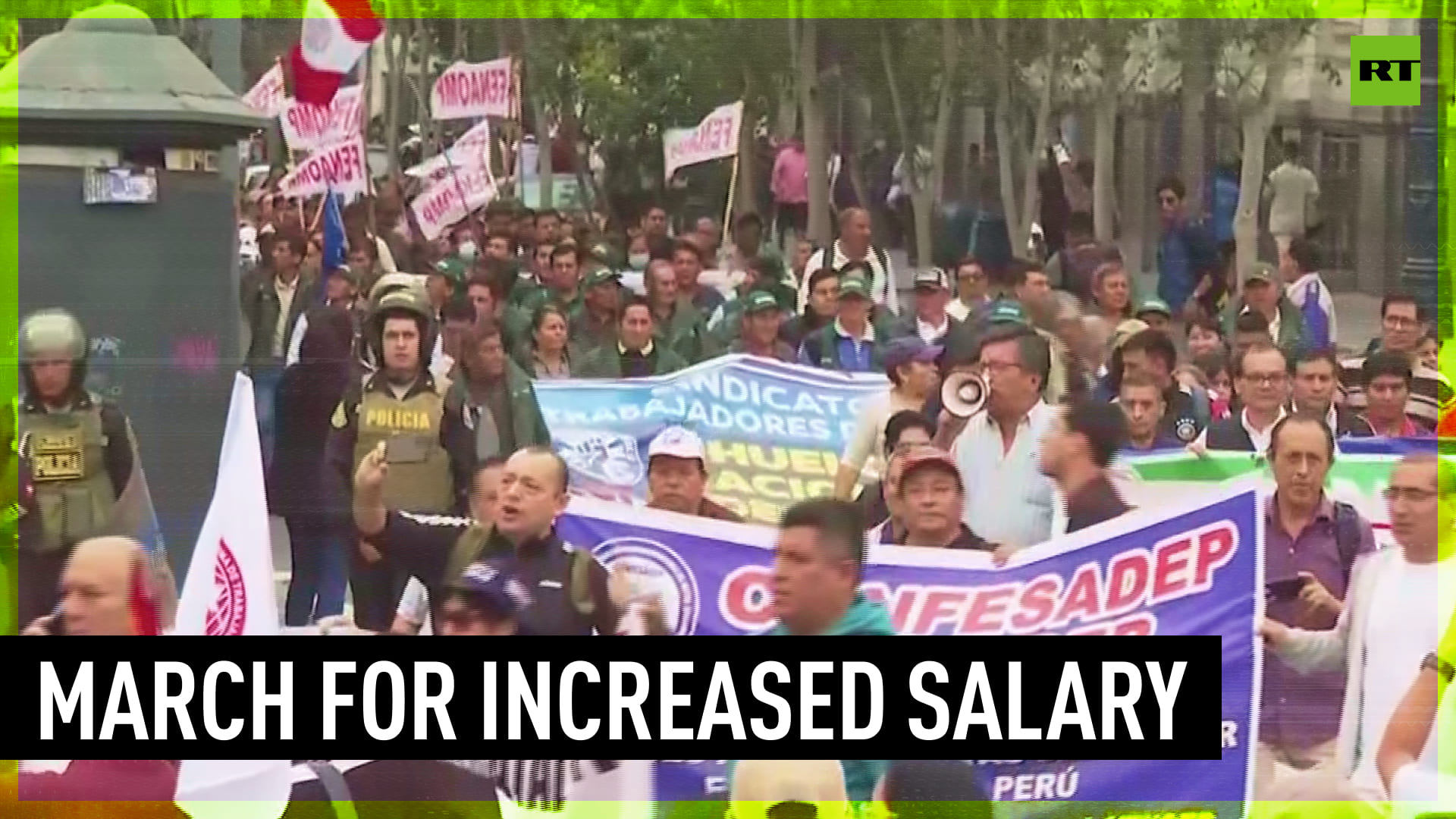 Thousands of state workers and union leaders took to the streets of Peru's capital, Lima, to protest against the government of President Dina Boluarte and to demand salary increases. ------------------------------------------------------------------------------------- Freedom over censorship, truth over narrative. Follow us on Facebook: https://www.facebook.com/RTnews Follow us on Telegram: https://t.me/rtnews Follow us on Twitter: https://twitter.com/RT_com