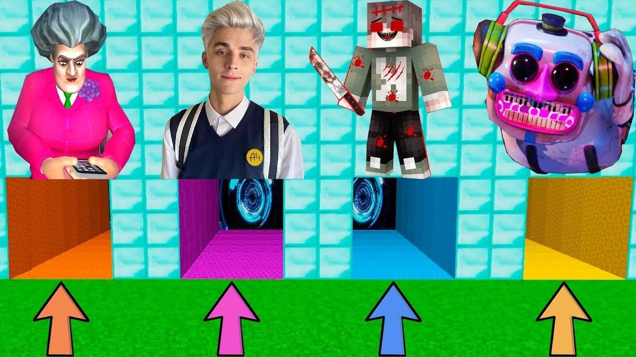 ВЫБЕРИ ПРАВИЛЬНЫЙ ПОРТАЛ ТУННЕЛЬ ВЛАД А4 КОЛЯ EXE УЧИЛКА МИСС ТИ ДИДЖЕЙ АНИМАТРОНИК FNAF В МАЙНКРАФТ