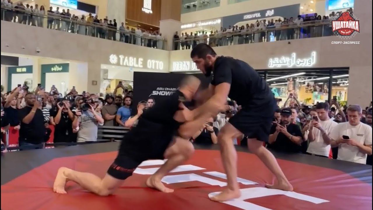 Ислам Махачев: открытая тренировка перед турниром UFC 294, где его соперником станет Алекс Волкановски. На тренировке Махачев показал борцовские приемы напару с серебряным призером Олимпиады Магомедхабибом Кадимагомедовым.