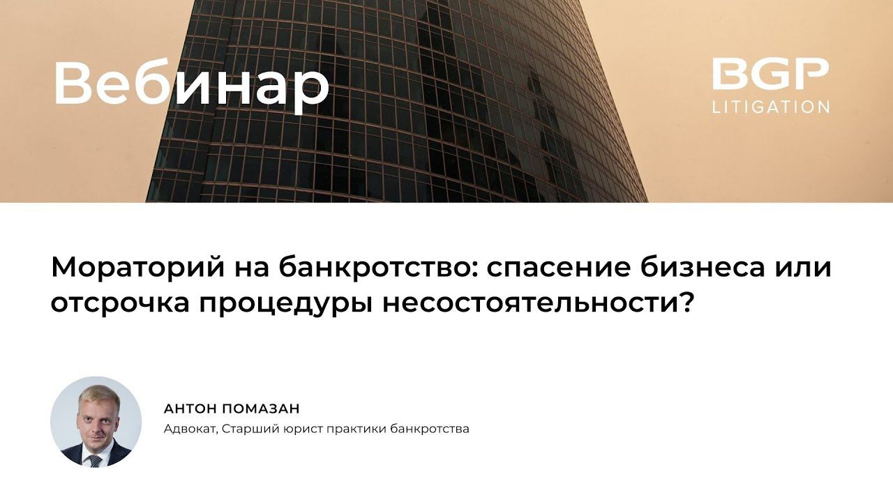 Возможность введения моратория на банкротство на первый взгляд представляется вынужденной и полезной мерой для защиты бизнеса в текущих условиях. Однако при более детальном анализе возникает много сомнений и вопросов. В рамках вебинара мы будем разбираться с этими сомнениями и ответим на следующие вопросы: - На каких должников будет распространяться мораторий? - Как должнику вести свою деятельность в период моратория? - Каким образом должнику взаимодействовать с кредиторами и как грамотно заключить мировое соглашение в условиях моратория? имеет ли смысл в период действия моратория подавать заявление о признании себя банкротом? - Какие особенности оспаривания сделок и привлечения к субсидиарной ответственности в процедурах банкротства, возбужденных в период и после моратория? В качестве бонуса также обсудим, какие еще важные изменения готовятся в Закон о банкротстве, и как они повлияют на бизнес. В частности затронем вопрос о реструктуризации долгов как реабилитационной процедуре, альтернативной банкротству. Организаторы вебинара: BGP Litigation и Московская Торгово-Промышленная Палата Присоединяйтесь к BGP Litigation в социальных сетях: ▪️Facebook https://www.facebook.com/bgplitigation ▪️Telegram https://msto.me/card1620203889/ Связаться с нами: ▪️https://bgplaw.com ▪️office@bgplaw.com ▪️+7 (495) 777 28 20
