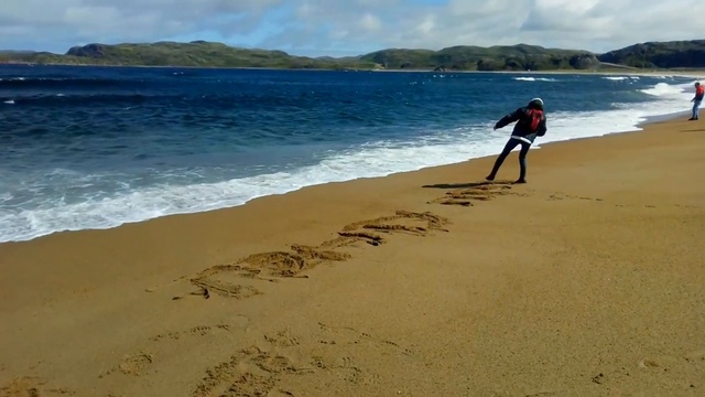 Викторовна пишет на берегу моря на песке название клуба «Тэнгу Про». Териберка