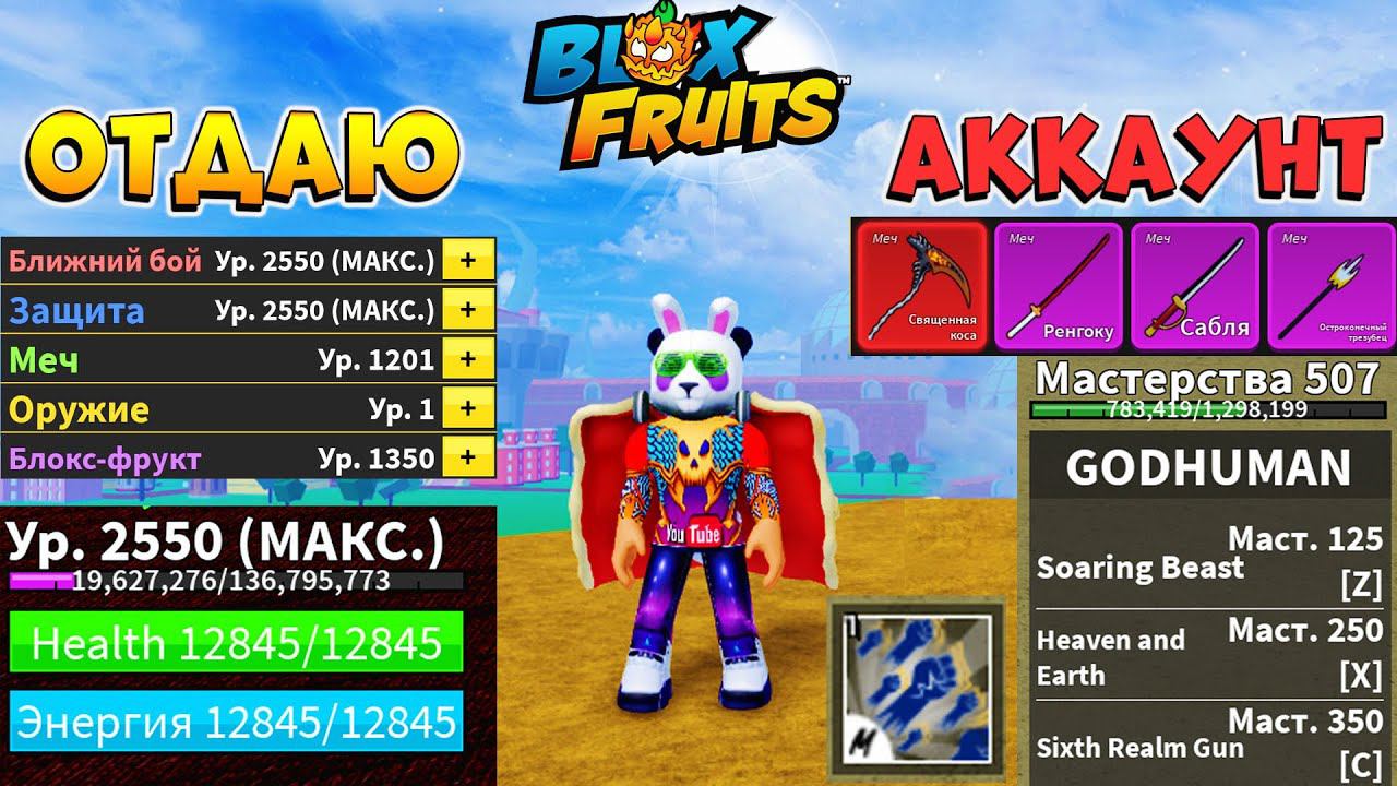 ОТДАЮ ФУЛЛ АККАУНТ 2550 ЛВЛ с ГОД ХУМАН и КОСОЙ в 18:00БЛОКС ФРУТС РОБЛОКС СТРИМ 572